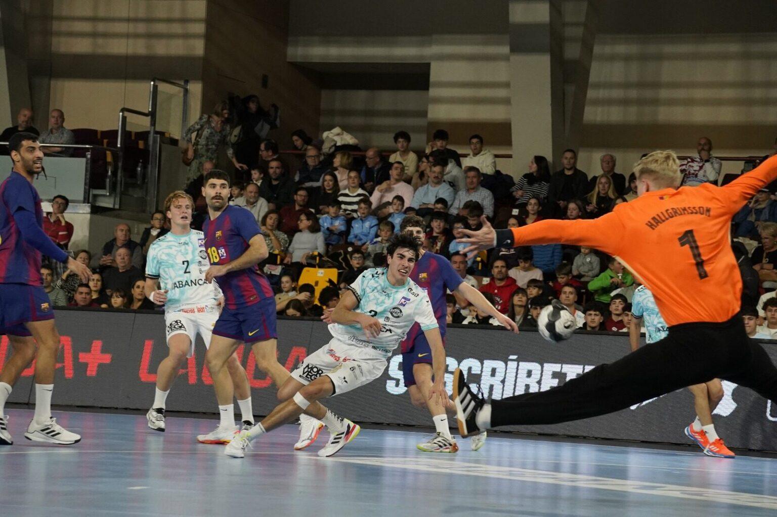 El Palacio de los Deportes vivió este domingo una de las grandes citas del curso. Más de 3.000 espectadores llenaron las gradas para recibir al todopoderoso FC Barcelona, líder invicto de la Liga ASOBAL, en un partido en el que el Abanca Ademar aguantó media hora al máximo nivel antes de ceder con claridad: 28–38.