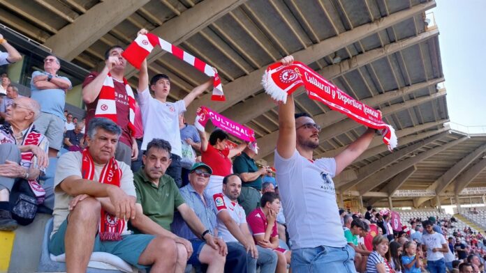 El partido se paró unos minutos por una incidencia en la grada que requirió asistencia médica, antes de llegar al descanso con empate a cero. En el intermedio, la Cultural entregó al Almería un Gallo de San Isidoro como recuerdo de su visita al Reino.